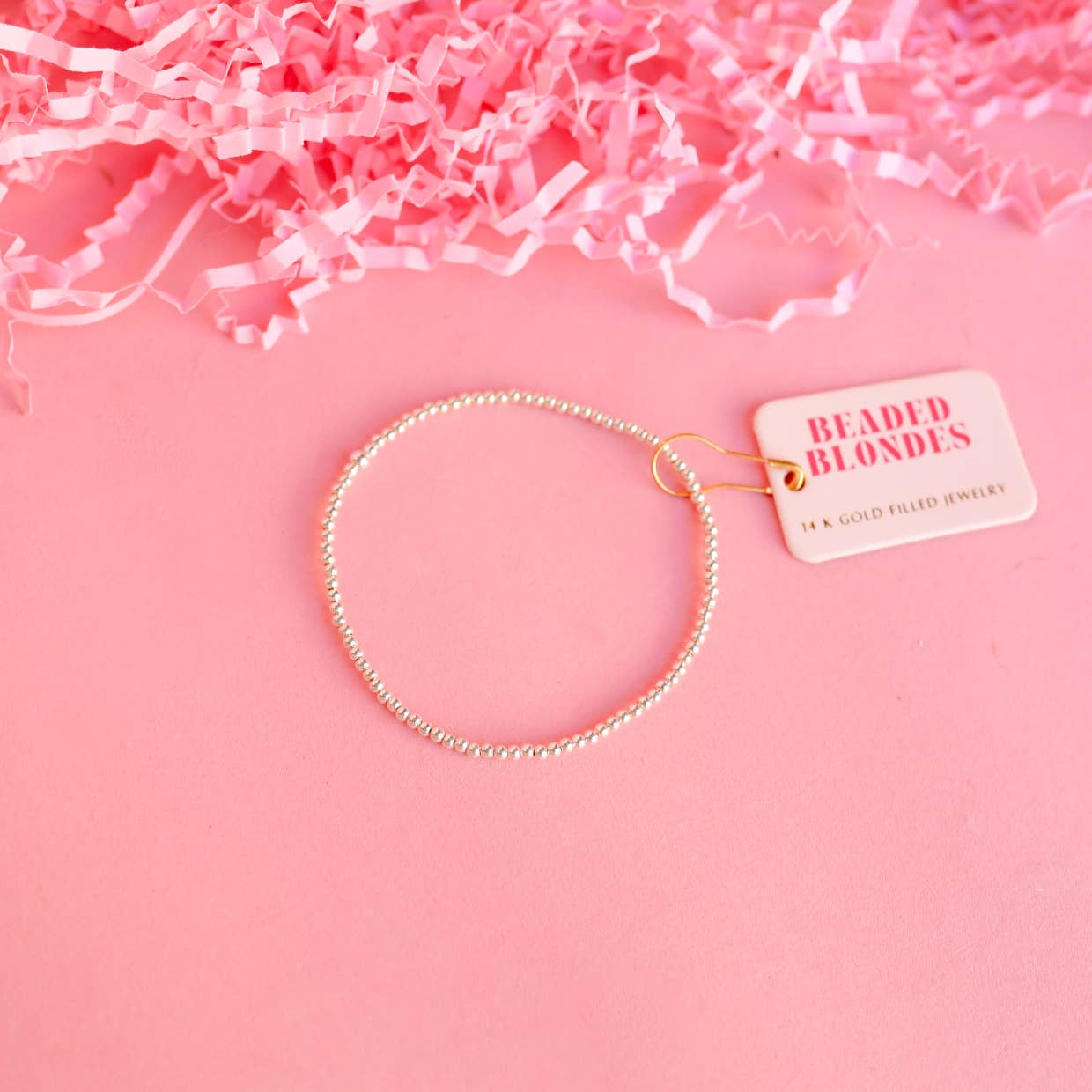 Beaded Blondes silver stackable 2MM beaded bracelets.