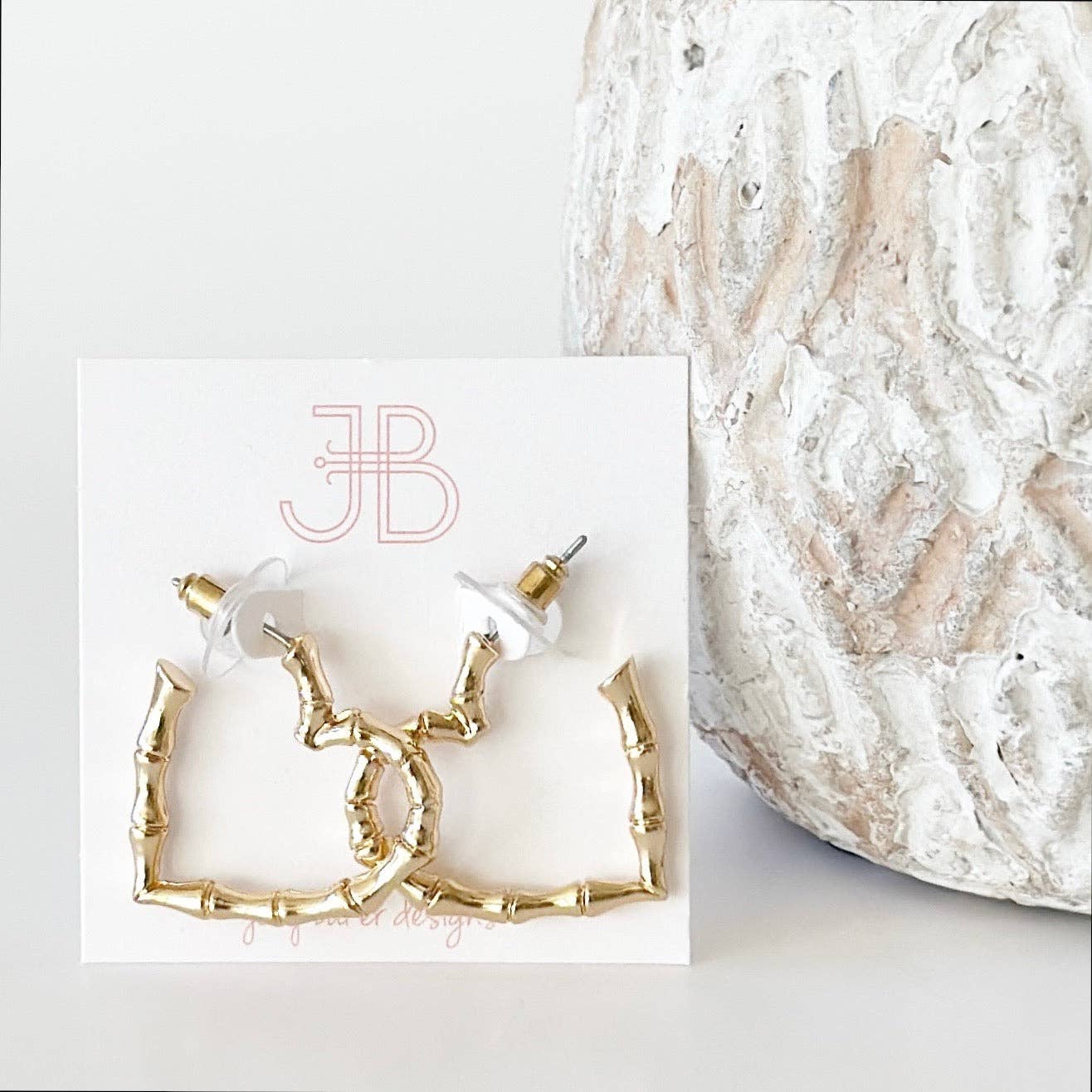 * A fun, textured heart earring that's a little different! Small bamboo style post hoops, very lightweight!