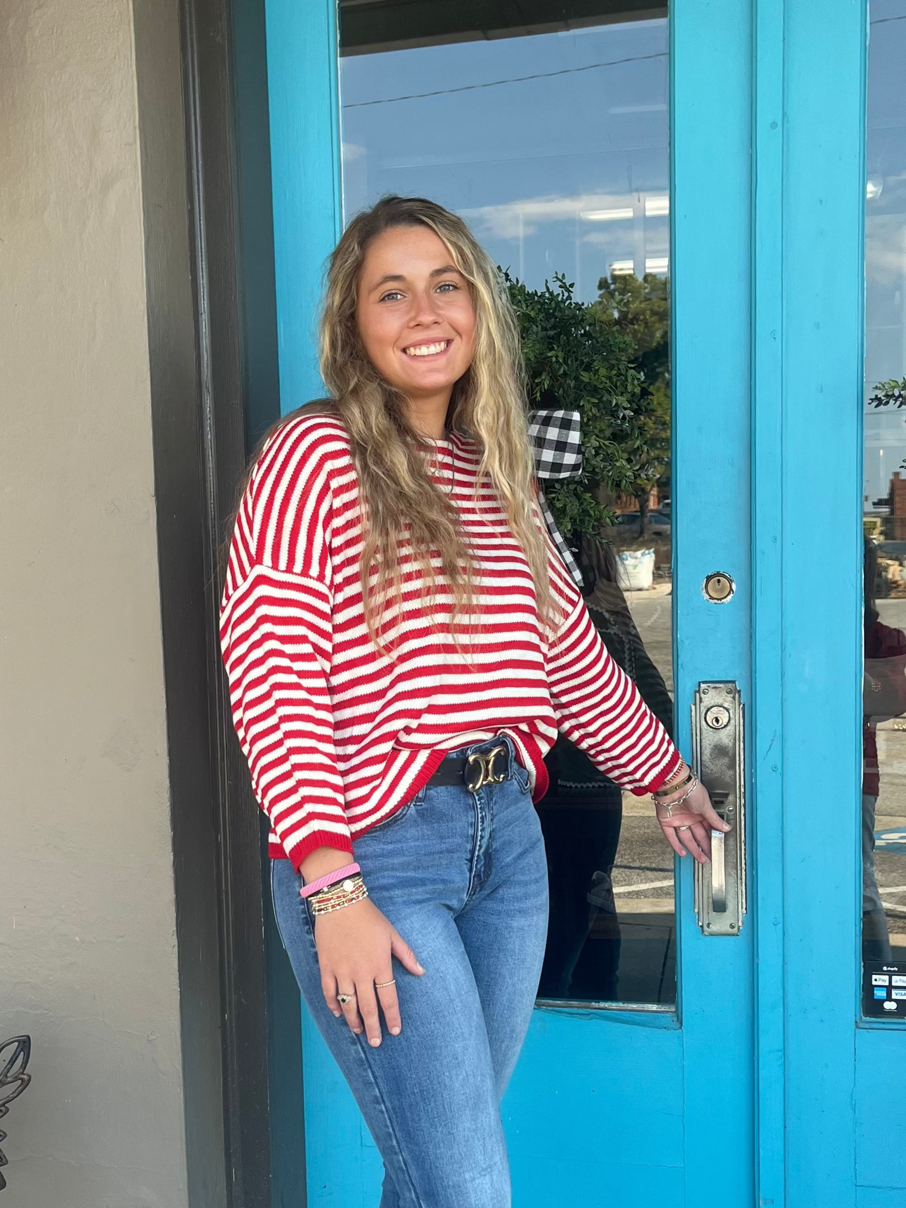 This Candy Stripped Sweater features a lightweight, thin knit perfect for layering or mild weather. Its playful striped pattern adds a pop of color to any outfit while maintaining a cozy, breathable feel. Ideal for staying stylish and comfortable throughout the day.