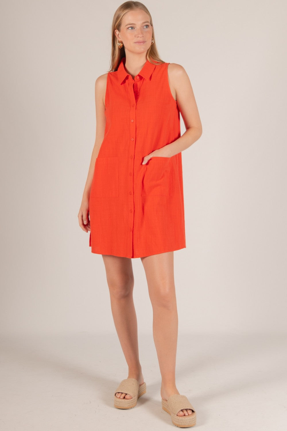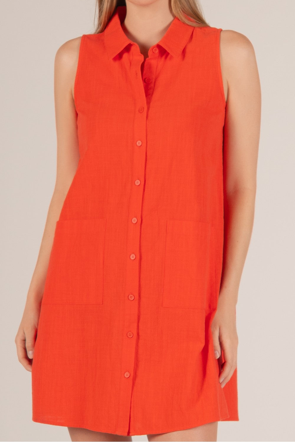 This sleeveless cotton dress offers versatile style, easily worn as a dress or tunic for effortless comfort and casual elegance. Perfect for warm days and layering.