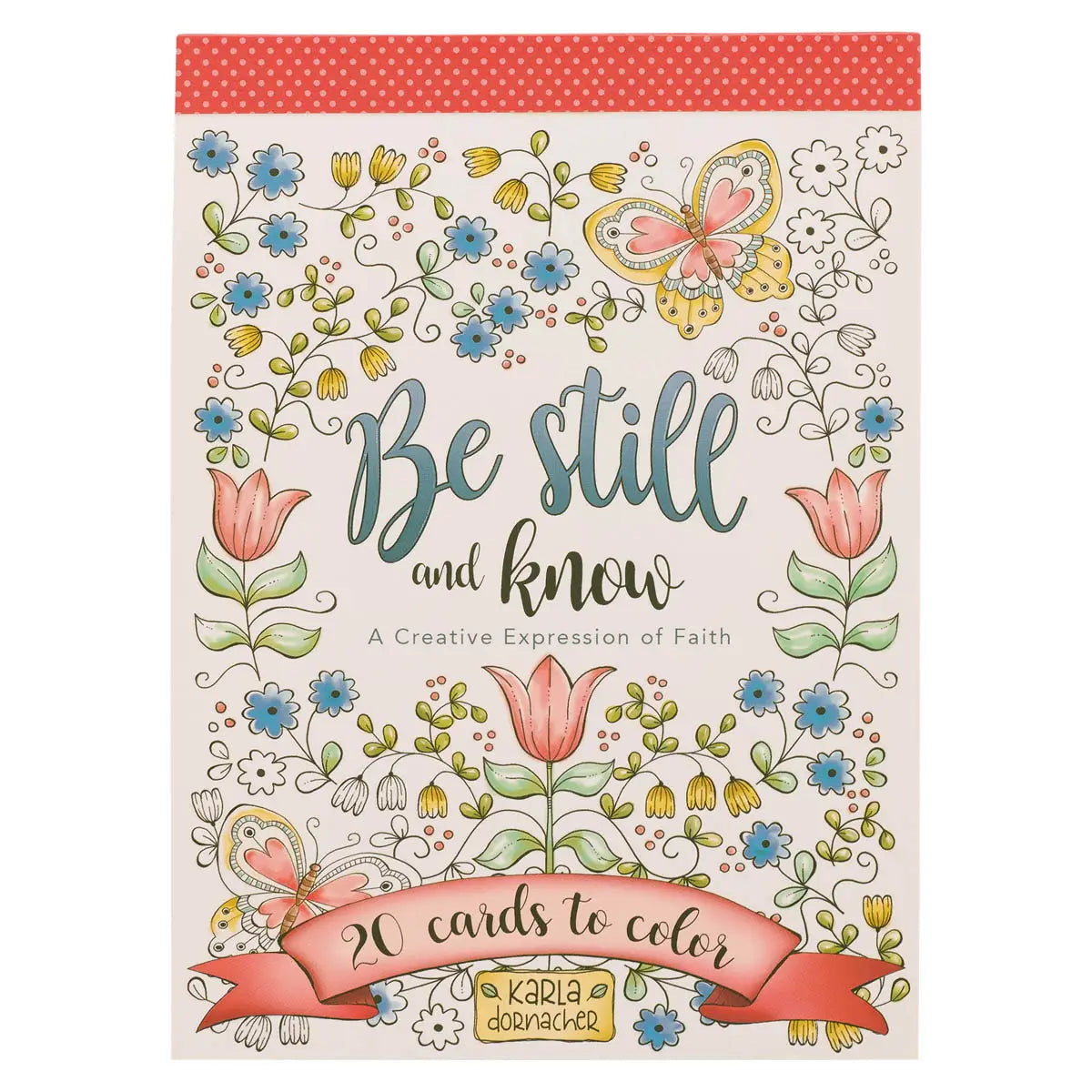 Grab your set of colored pencils, gel pens or markers and relax with this stunning booklet of Be Still and Know Coloring Cards. The inspiration for these cards come form Psalm 46:10 and is an opportunity to creatively express your faith. Christian coloring cards by Karla Dornacher, 20 cards per booklet, Heavy cardstock with easy tear-out.