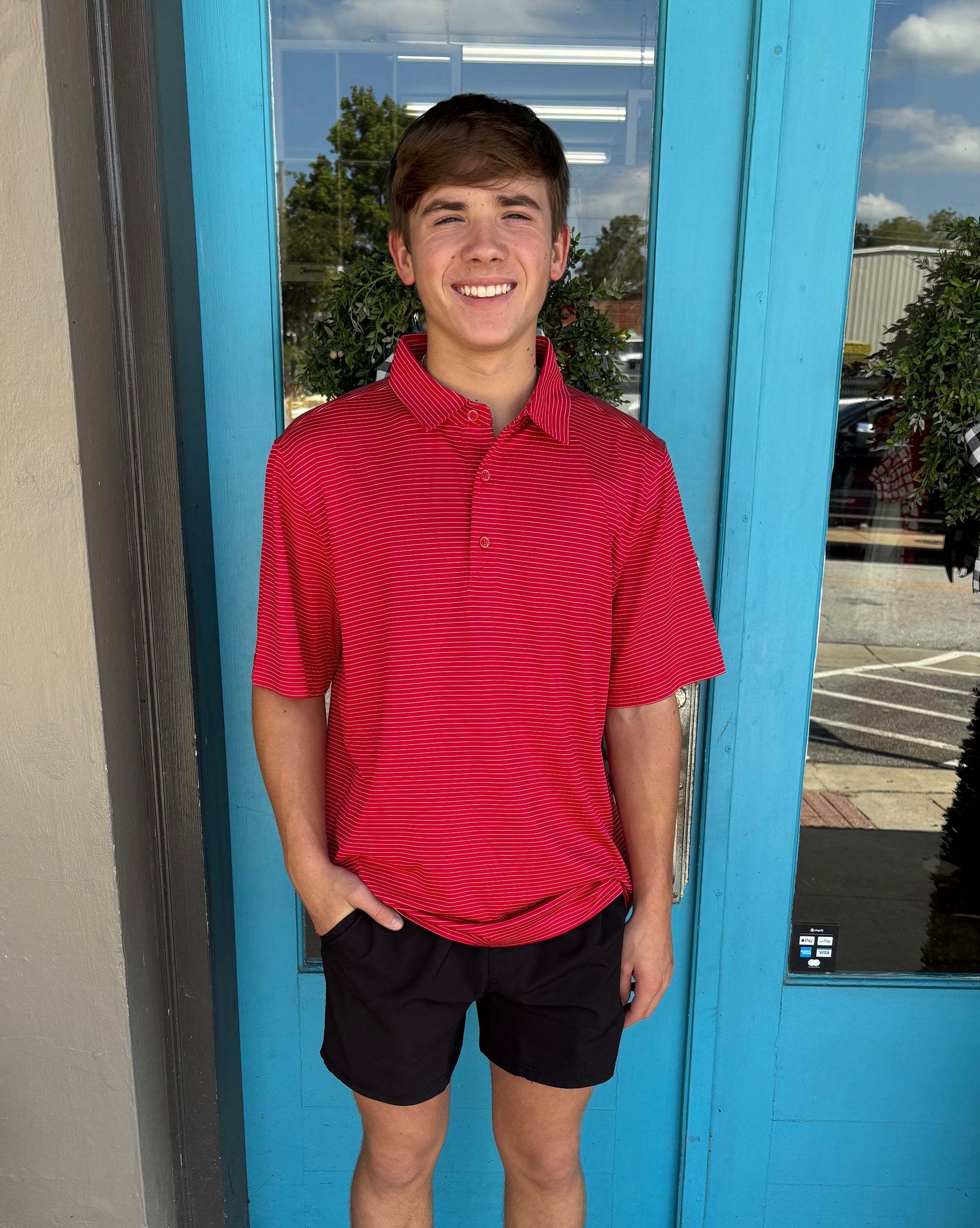 The iconic short sleeve Forge Pencil Stripe Polo is engineered with stretch for exceptional versatility, designed to be your favorite super soft, finely striped men's short sleeve polo shirt for the golf course, the clubhouse, the office, or every day. Supremely soft and stretchy, the high quality fabric is a perfect blend of DryTec polyester and spandex, giving you ultimate versatility for your active wardrobe.