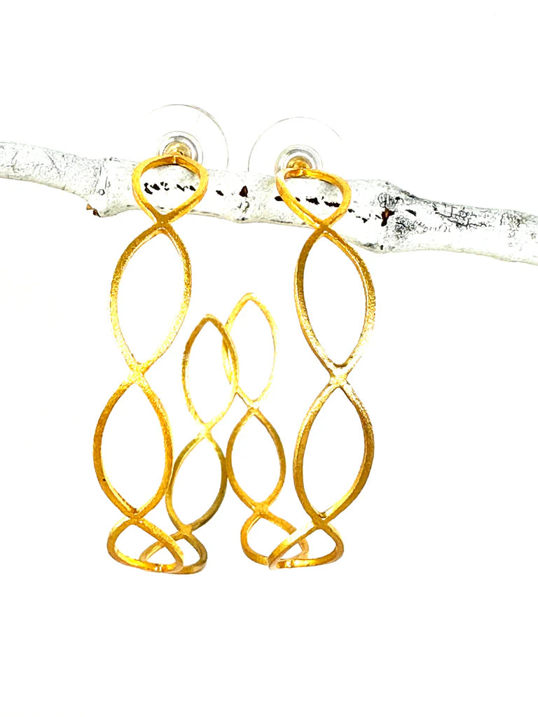 These 2" 18k gold plated hoops feature a unique weave design, adding a touch of elegance to any outfit.