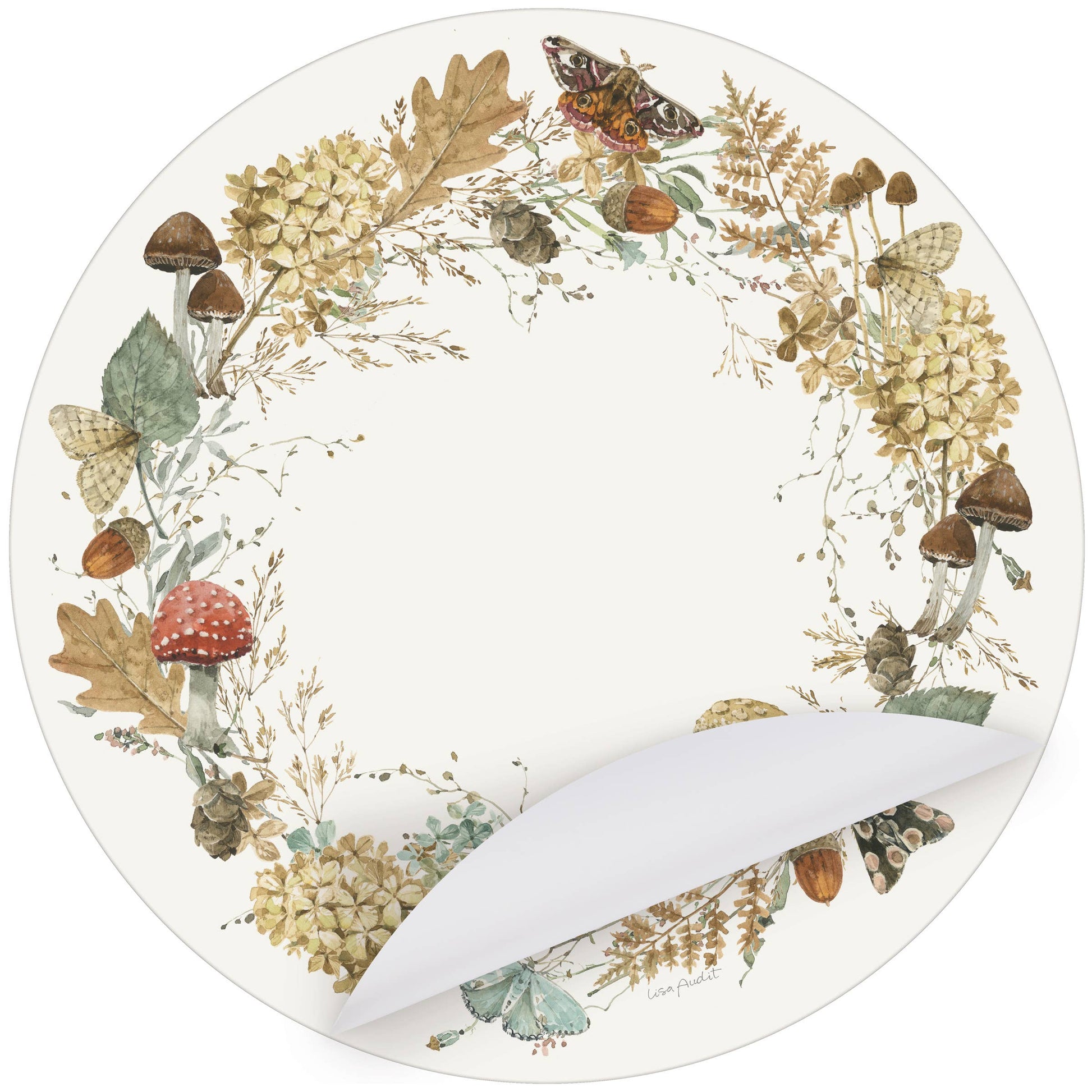 Great for customizing place settings and making clean-up a breeze, these round paper placemats from our Fall & Harvest Collection display a unique hand painted design of a fall wreath with mushrooms and butterflies. Our Fall Wreath placemats are shrink-wrapped for protection as well as easy storage and shelf display. Each pack includes 24 single-use, tear-off placemats. A fall-themed tabletop accessory perfect for customizing seasonal place settings.