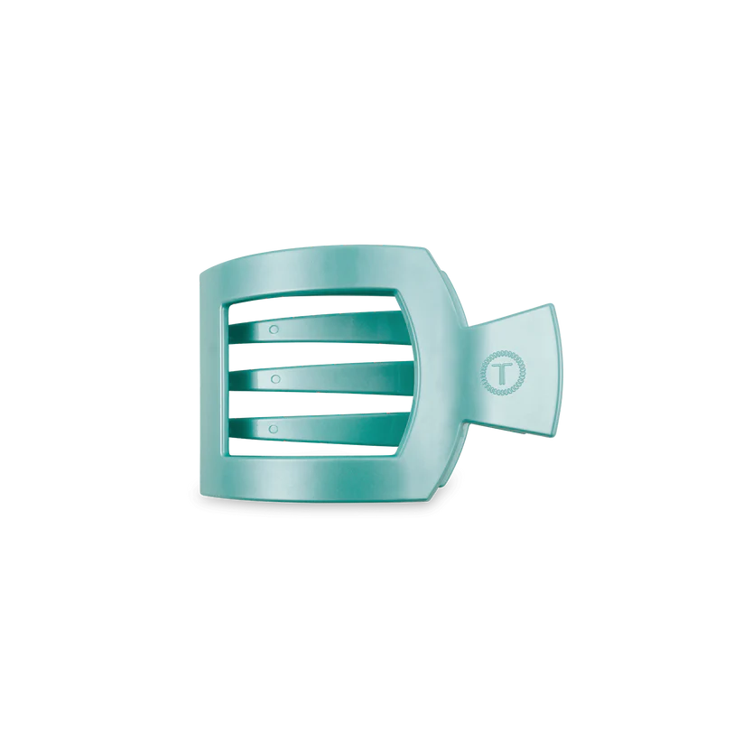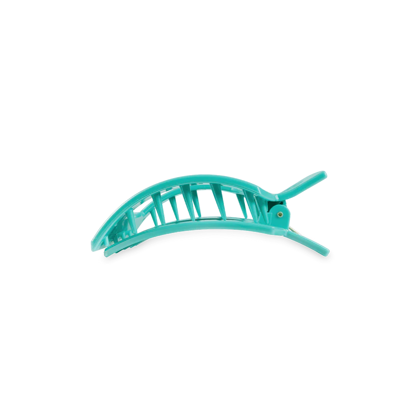 Lay flat and relax with the new TELETIES Totally Turquoise Small Flat Square Hair Clip in Blue. This hair clip is designed to allow you to lay back flat, do yoga, or sit comfortably in a seat with a headrest, and it is made with the same material that is nearly unbreakable.