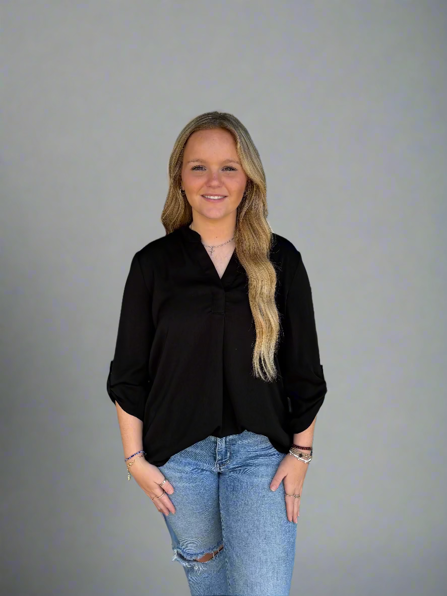 Elevate your wardrobe with Hillary's Classy Blouse. This elegant blouse is the perfect addition to any outfit, giving you a sophisticated and polished look. Made with high-quality materials, you'll feel confident and comfortable all day long. Upgrade your style with Hillary's Classy Blouse.