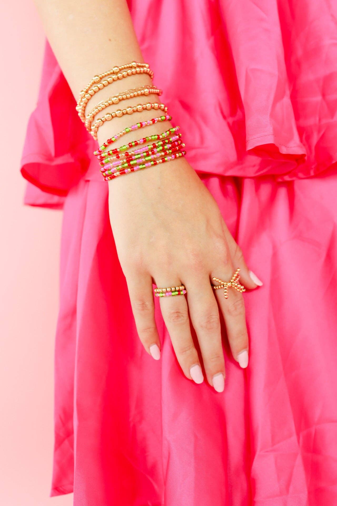 Beaded Blondes 2024 Holiday Bracelet. Add some color to your stack! This bracelet is made with colorful czech glass beads and 2.5mm 14k gold filled beads! ✨
