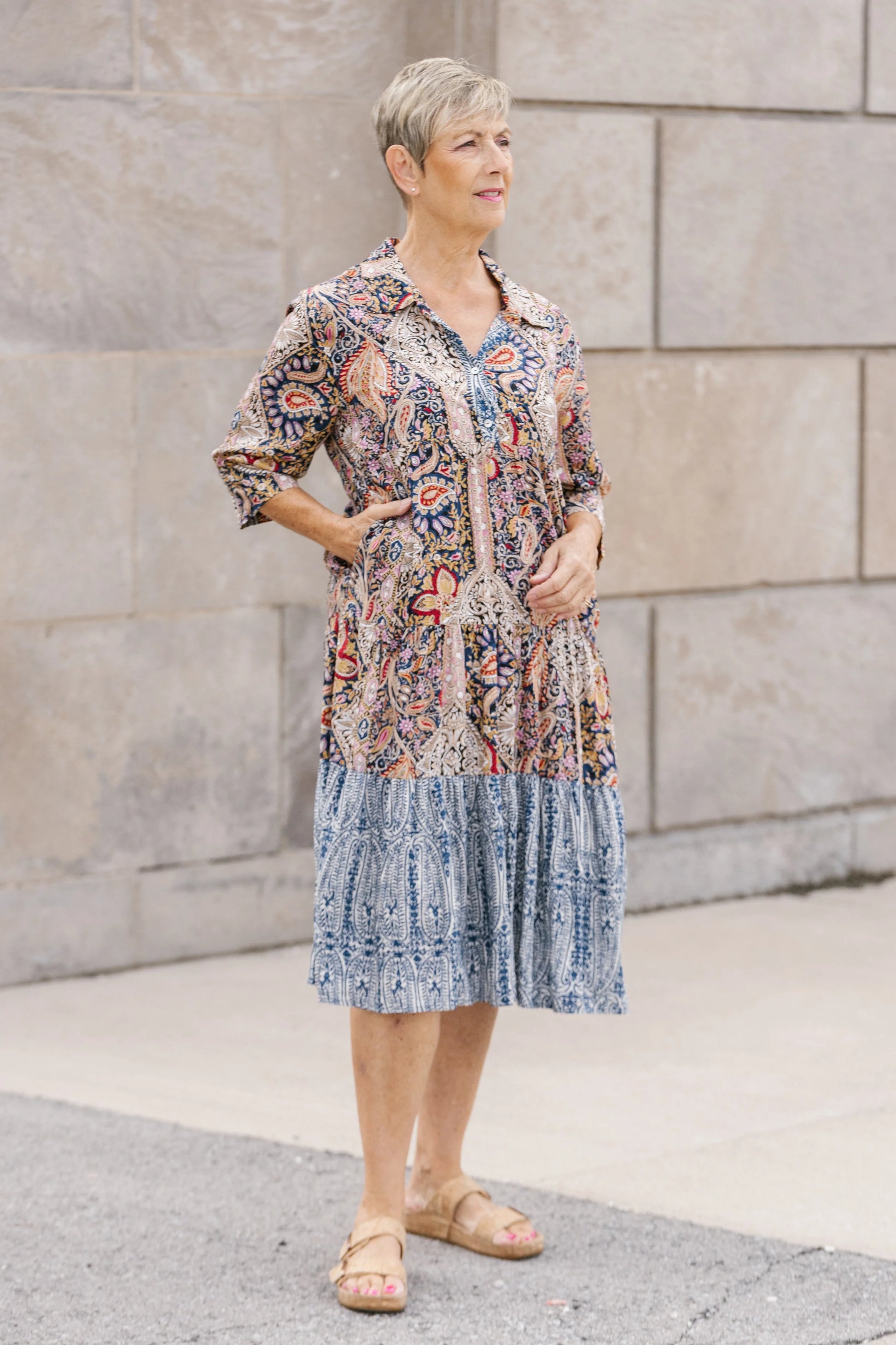 Such a great dress! The patchwork styling and loose fit make this a great outfit for the gal that is on the go!