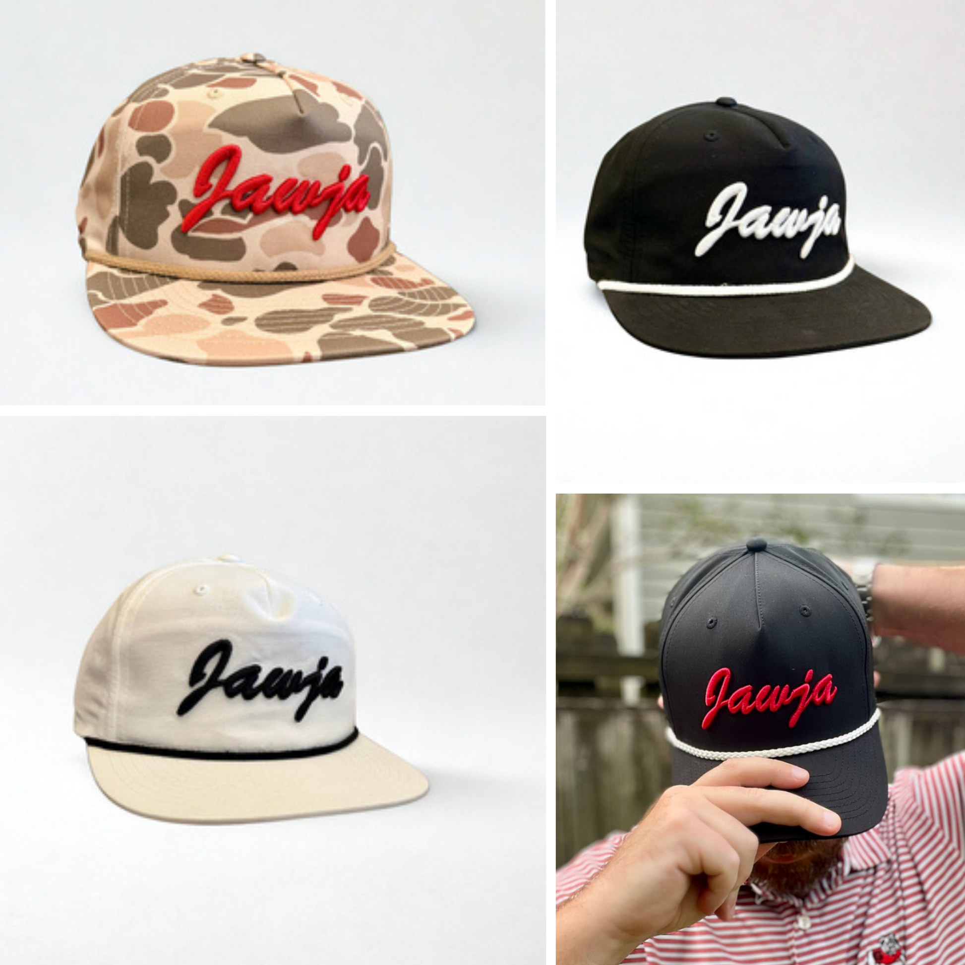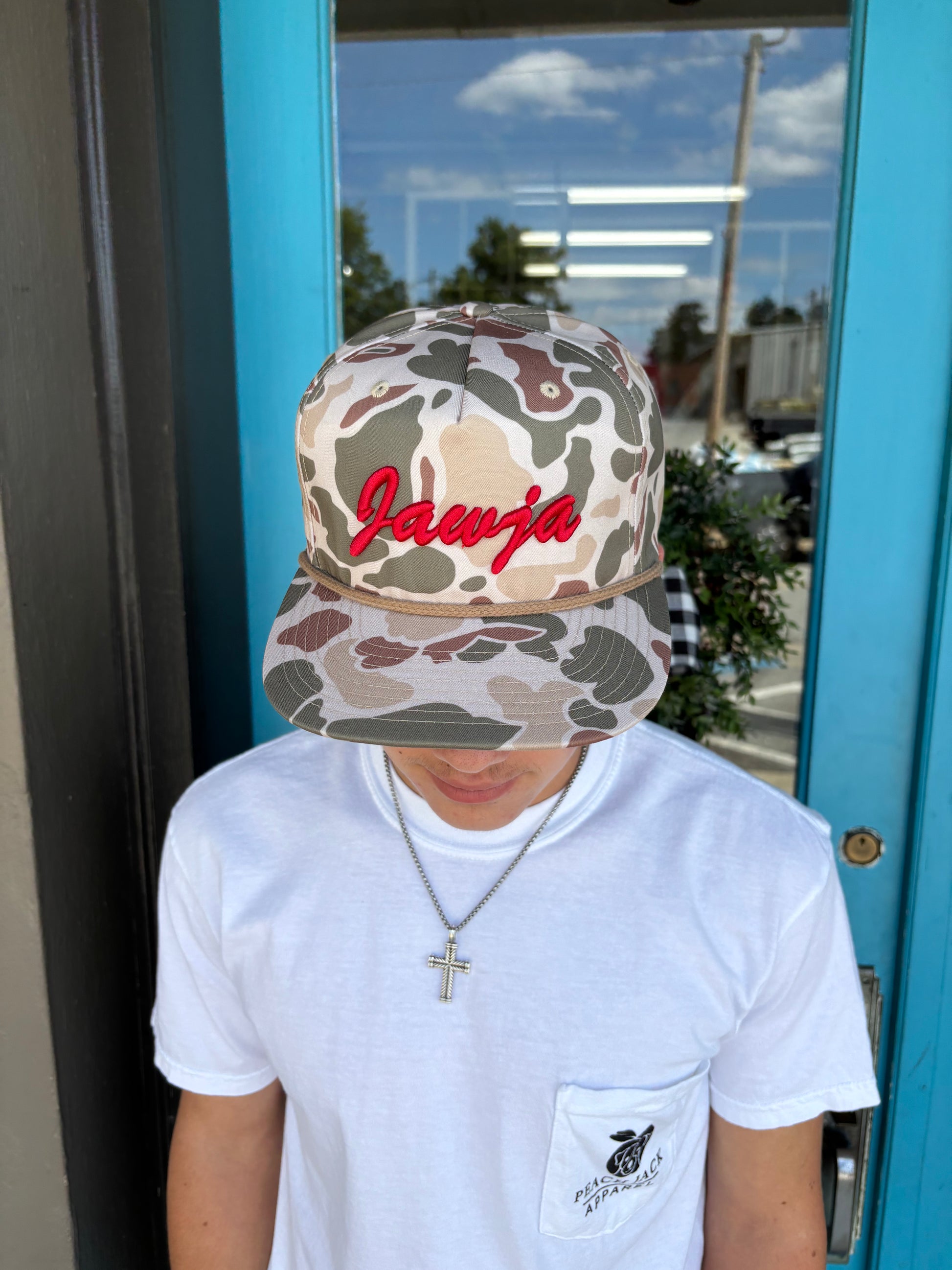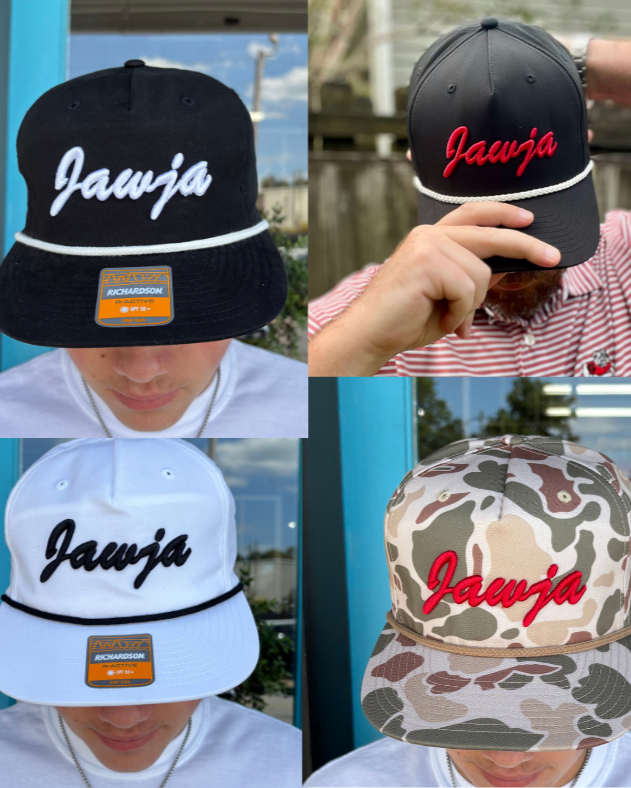 Our signature Jawja rope hat just got better! (Pronounced jaw · juh) The Classic City deserves an iconic cap and that is exactly what our Jawja Black brings to your next tailgate. This classic Peach Jack design is built for gameday in support of the Georgia Bulldogs.