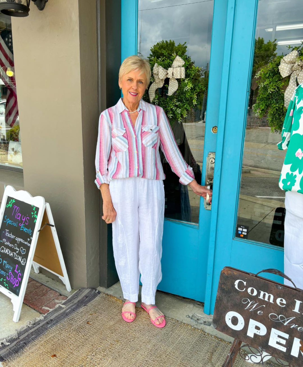 Effortlessly stylish and versatile, our Lace Up Back Shirt features a classic button up style with a trendy twist - a unique lace up back design. Made with a lightweight linen fabric.
