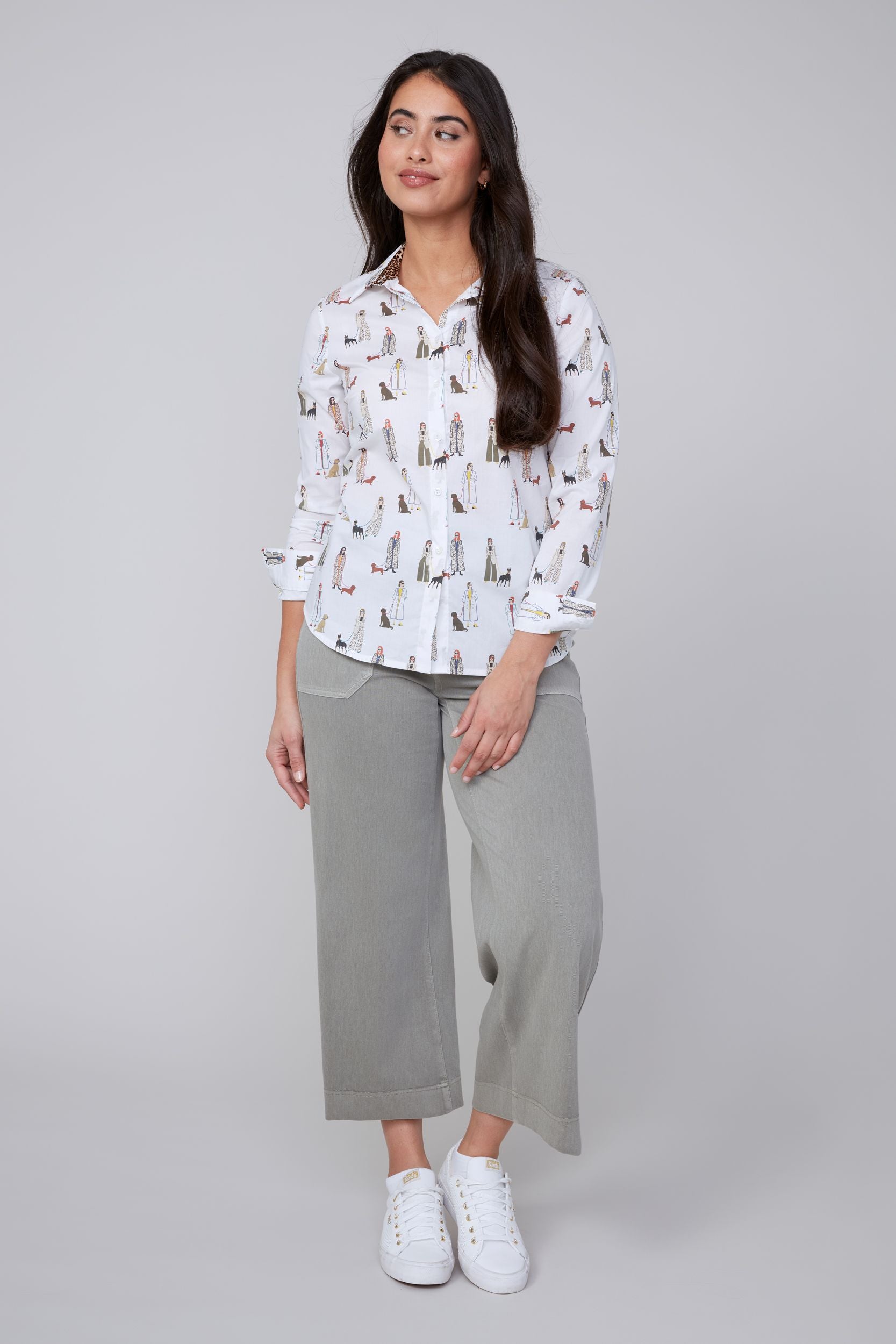 This cotton blouse features a classic collared button-up design adorned with a playful horse print, adding charm to your everyday look. Comfortable and stylish, it’s perfect for casual outings or relaxed workdays.