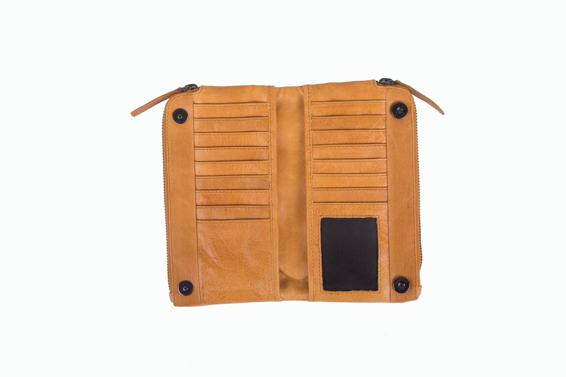 Elena is a full-size zip wallet with a lot of space for cards currency and coins. 15 credit card slots. Three secured zip pockets are all made in our super soft cow Nappa leather in a minimalist design. Opening an Elena is effortless as it’s secured by 2 easy to open snaps. Measures 4.3″ x7.5″x 1.2″
