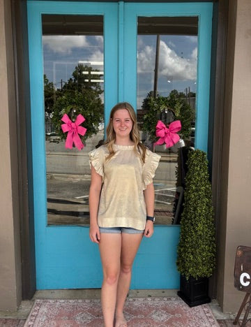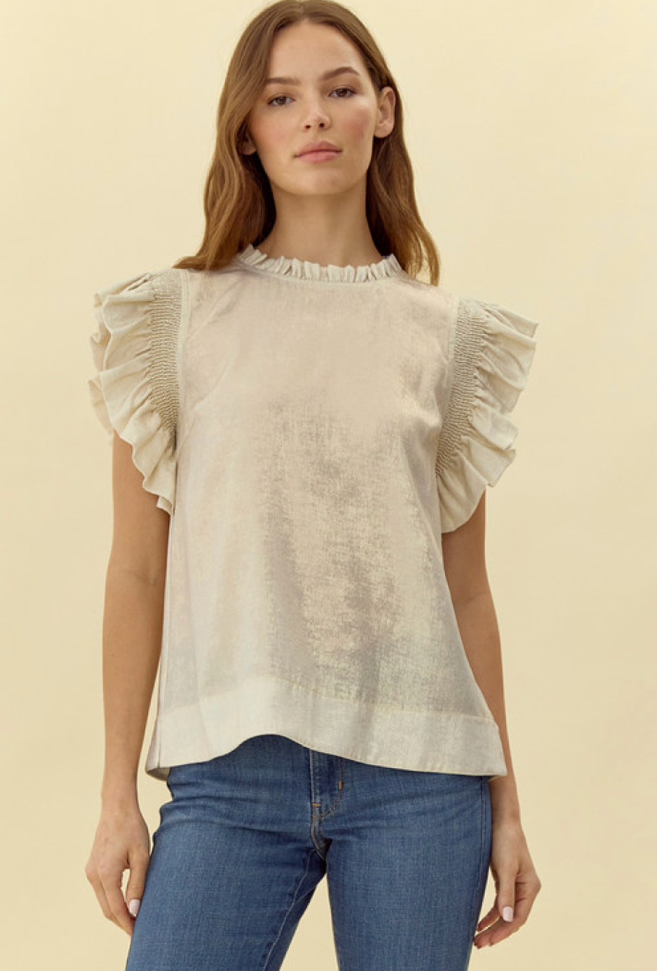 The perfect blend of elegance and charm, this top will elevate any outfit. With its iridescent finish and eye-catching design, you'll be the center of attention. Say hello to your new go-to piece.