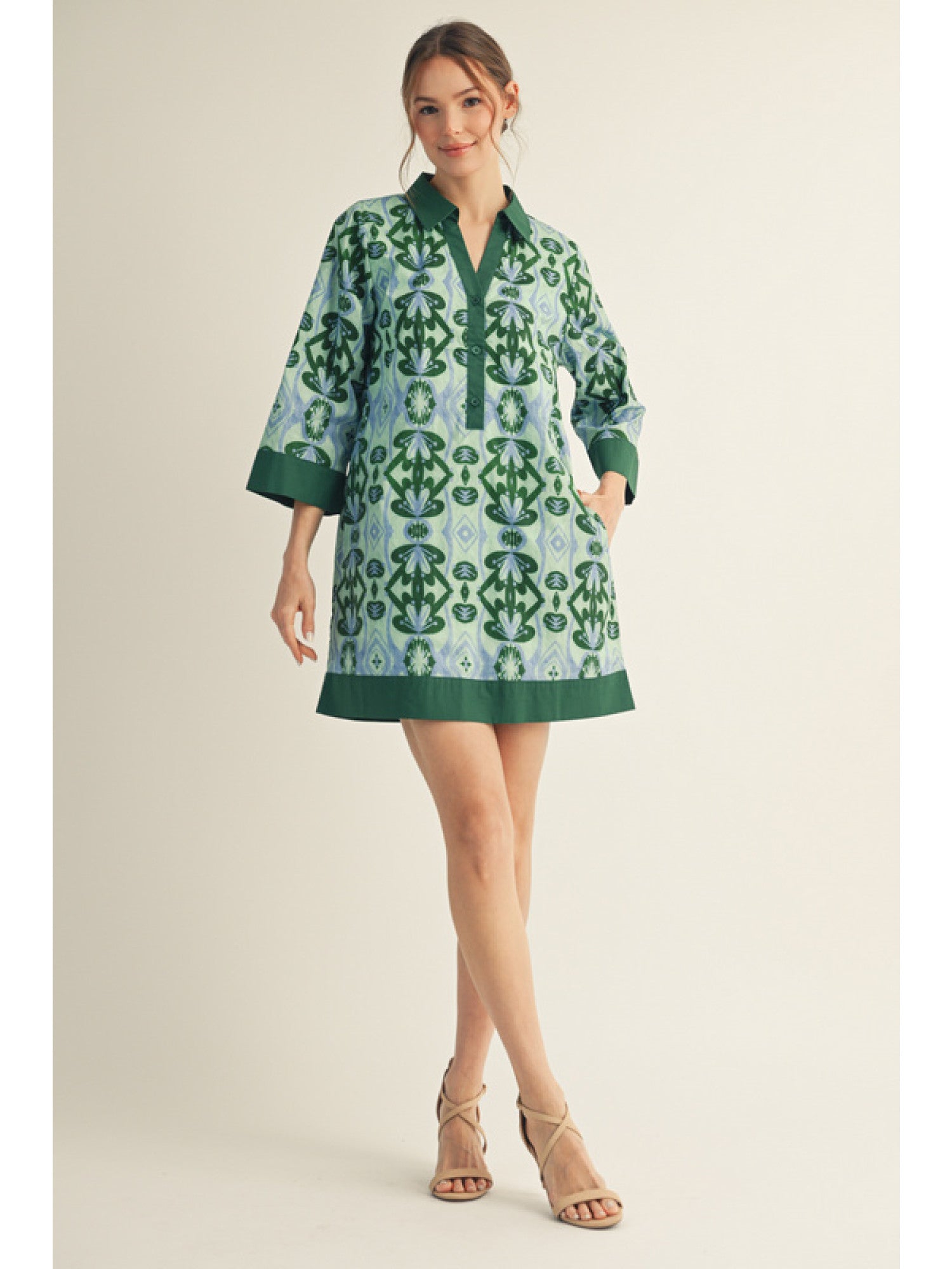 This Robin's Mini Dress features a vibrant blend of green and blue hues, perfect for adding a fresh pop of color to your wardrobe. Its flattering cut and lightweight fabric ensure comfort and style for any occasion.