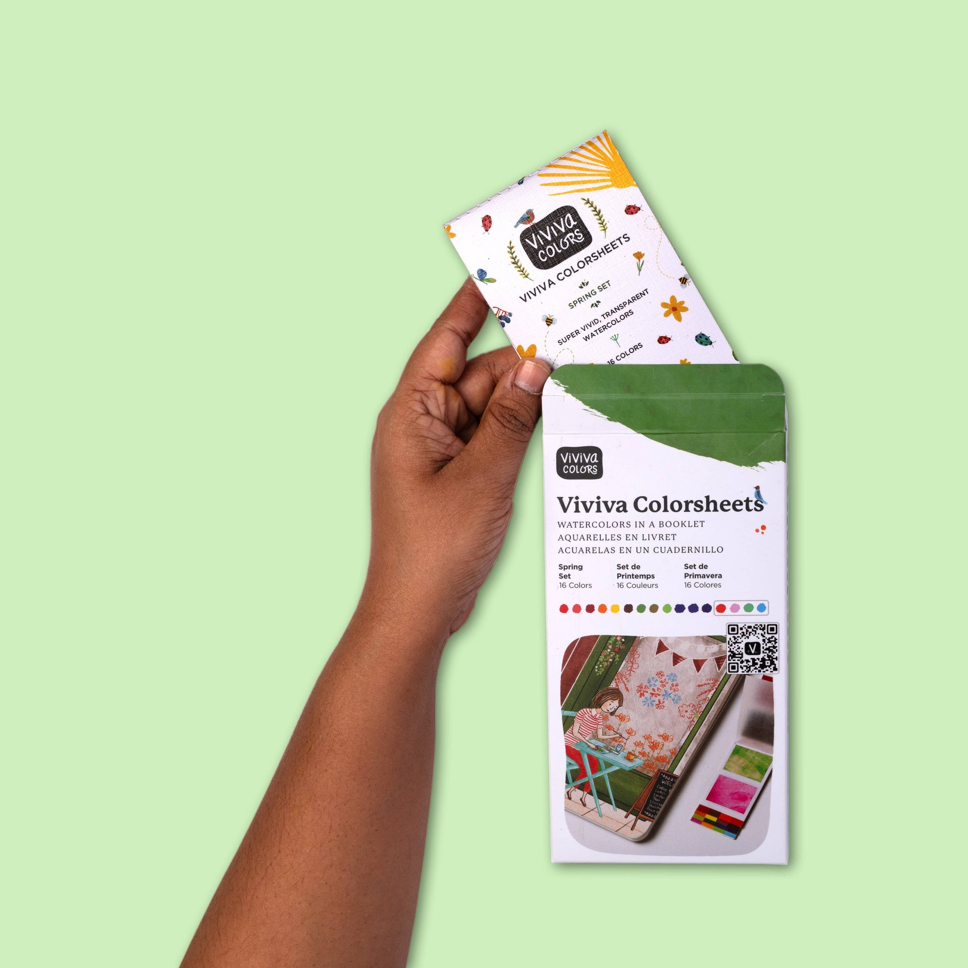The Spring Set includes: 1 x Viviva Spring Single Set Colorsheets The Viviva Spring Colorsheets is a collection of 16 immensely pretty and vibrant spring colors which include 4 specially curated Metallic colors that add to the beauty of colors! And not to forget, Viviva Colorsheets are travel-friendly. Viviva Colorsheets Spring Set comes with: • 16 Super Vibrant Spring Colors • An inbuilt reusable Mixing Palette • Special Water Resistant sheets to separate different colors • Color-Coded sheets for easy use • Designed for a mess-free & stress-free watercolour painting experience. Super fun & easy to use. These are perfect for all of your summer fun and gifting!